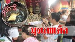 ... ลูกใหญ่ชี้ขึ้นท้องฟ้าทำให้นักบรรดาเสี่ยงโชคทราบข่าวจึงเดินทางมาขอหวยตามความเชื่อ เพื่อนำไปเสี่ยงดวงเพราะใกล้ถึงวันที่สลากกินแบ่งรัฐบาลออกผล ...